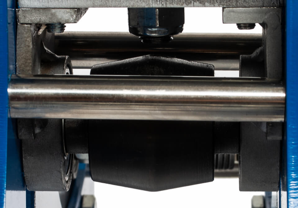 В отличие от них центральный вал трубогиба Удачный сделан в виде бочонка. Валок легко прокатывает широкий профиль без заминания. Мягко углубляет излишки металла внутрь профиля и не деформирует его форму.