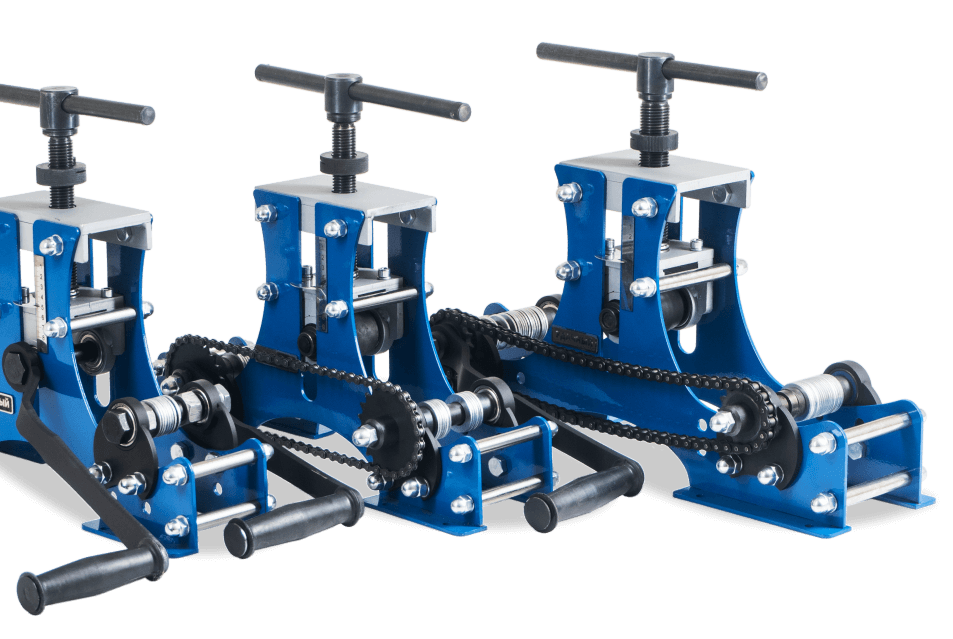 Трубогибы с плоским центральным валом проминают середину трубы, раздают ее вширь и заклинивают.